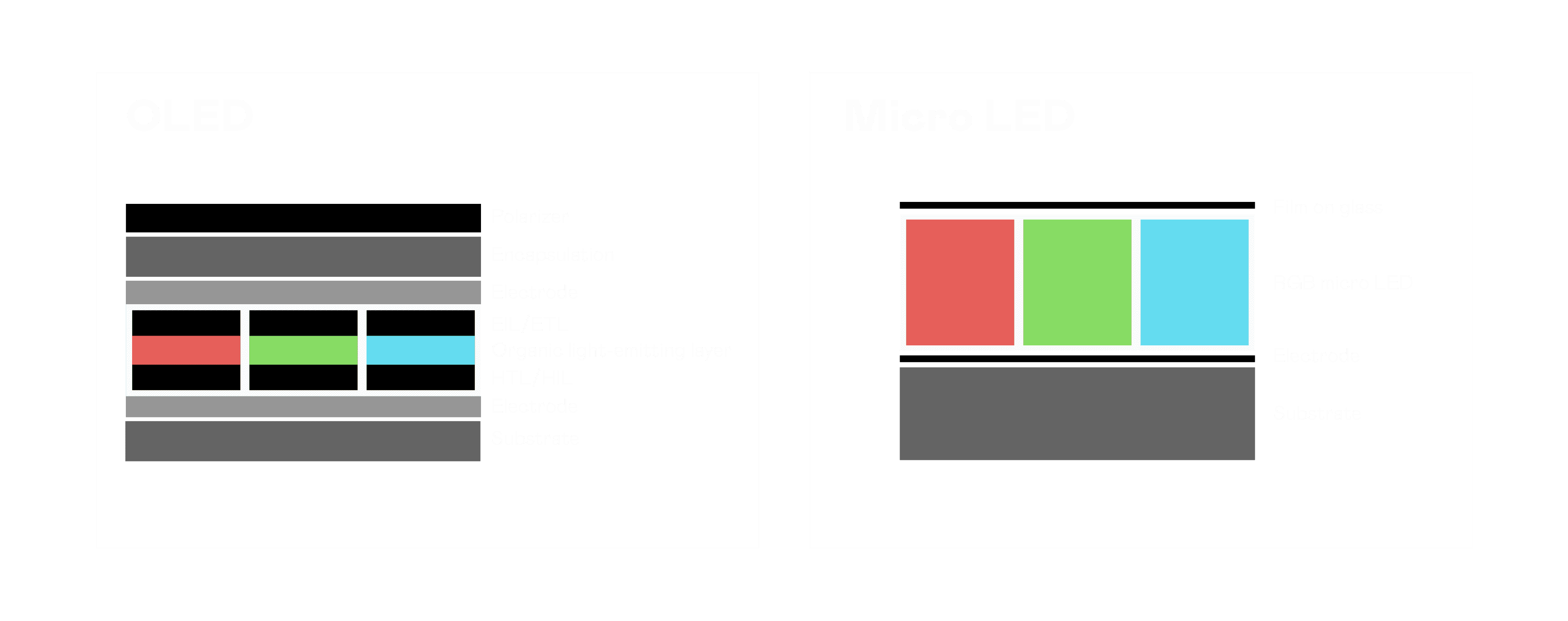 以 LED 做为显示画素,,,可让 LED 的发光效率发挥到极致,,从而让显示器具备优异的亮度表现,,不论是在户外或室内,,,,均具备出众的显示效果。。。同时,,与使用有机材料的 OLED 相比,,LED 具备更稳定、、、寿命更长的特性,,不仅不会有画面烙印问题,,,而且更不容易出现故障、、坏点。。。